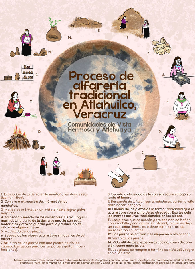 Todo empieza sacando la tierra de la montaña. Pero antes de hacerlo, las mujeres hacen una ofrenda llamada Xochitlalli, para agradecerle a la madre tierra lo que están por tomar. Luego dejan la tierra en remojo unos días, la mezclan con mármol molido y ahí recién pueden empezar a moldear. Trabajan con las manos y con lo que la naturaleza les da, por eso cada pieza es única.
